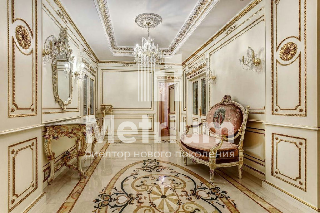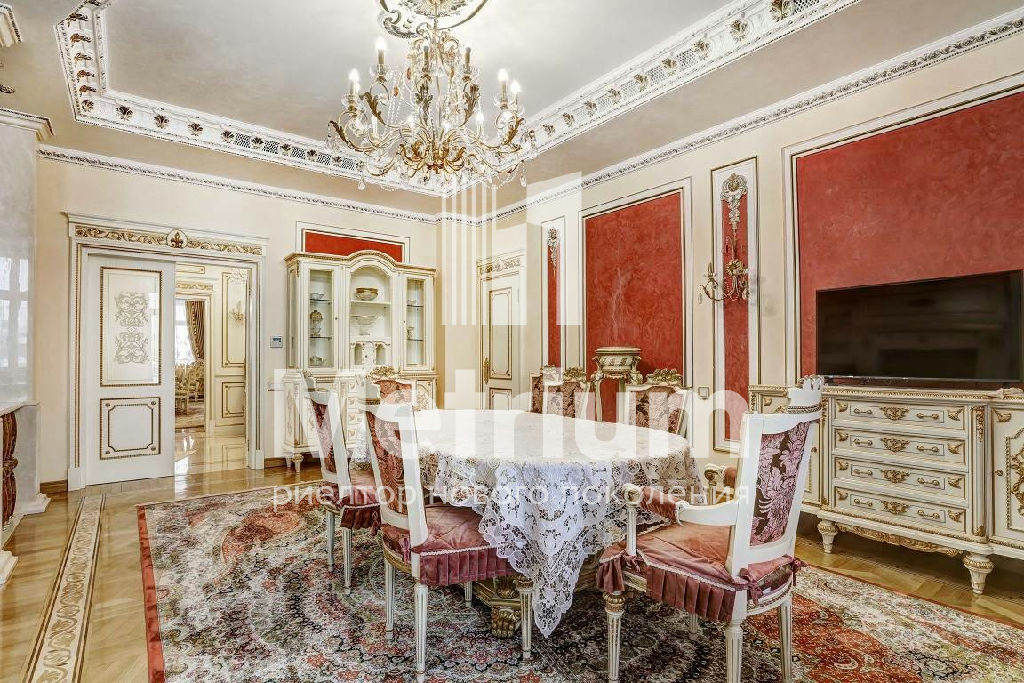 Интерьер квартиры выполнен в классическом стиле по эксклюзивному авторскому проекту. Мебель европейских производителей подчеркивает дворцовую торжественность общей концепции пространства.